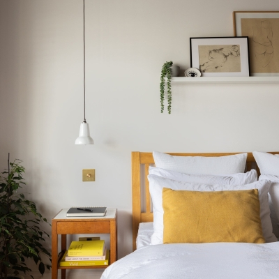 Moderne LED-Leselampe am Bett